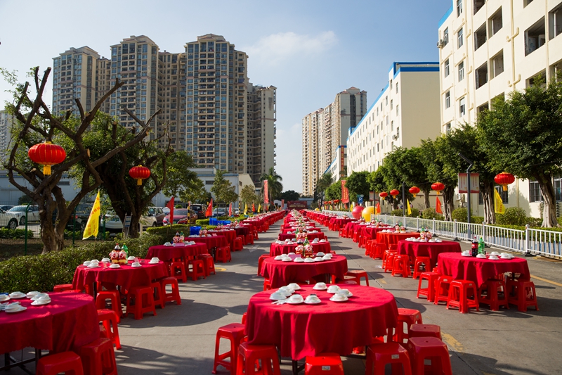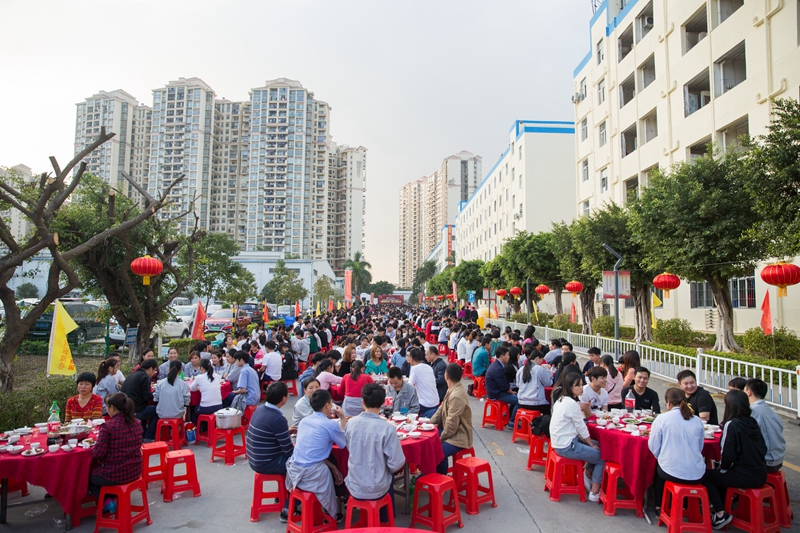 2019年1月11日下午,鳥語花香、陽光明媚。金年会网站net智能產業科枝園區彩旗獵獵,燈籠高掛,處處張燈結彩,一副熱鬧非凡、美輪美奐的景象。遠遠望去,金年会网站net大道上綿延幾百米,整齊地排列著160張鋪著大紅臺布的餐桌,猶如幾條巨大無比的彩帶在金年会网站net科技園▓區飛舞,場面頗為壯觀。