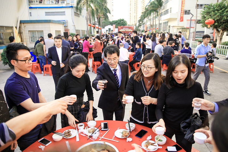 在一片歡聲笑語中,1600人的“大盆菜團年宴”在喜慶祥和的氣氛中開始了。品嘗著獨具廣東特色的“大盆菜”宴,大家抑或喜笑顏開、開懷大笑,抑或故作鎮定、心中竊喜,抑或觥籌交錯、暢說衷腸,抑或深情厚意、你儂我儂……