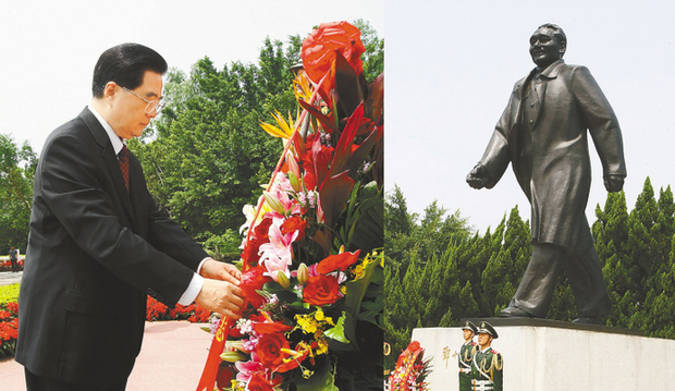 9月6日,中共中央總書記、國家主席、中央軍委主席胡錦濤在廣東深圳蓮花山公園向鄧小平同誌銅像敬獻花籃,表達對鄧小平同誌的無限敬意和懷念。 新華社█記者 李學仁 攝
